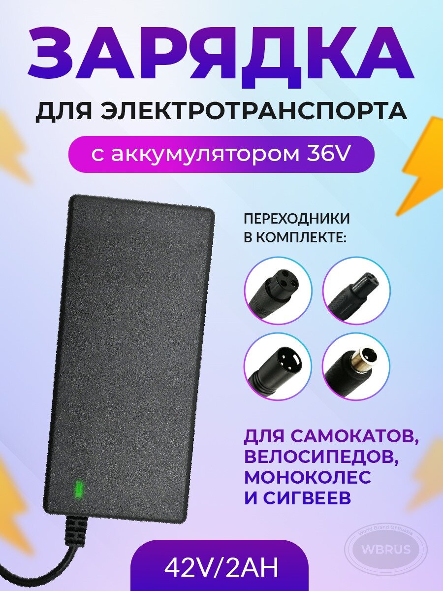 Зарядное устройство для электротранспорта 42V2A с переходниками информация:
