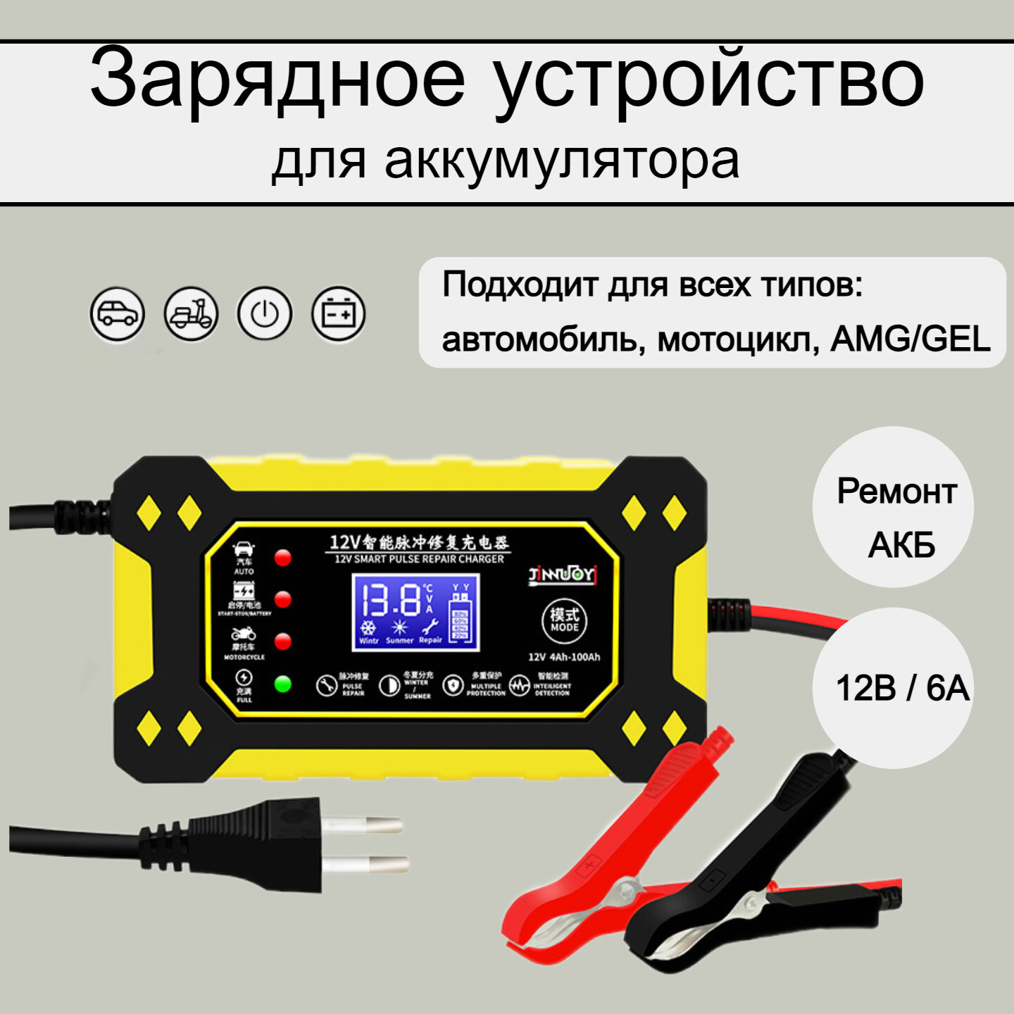 Зарядное устройство для аккумулятора автомобиля, мотоцикла, AMG, GEL, ремонта АКБ информация: