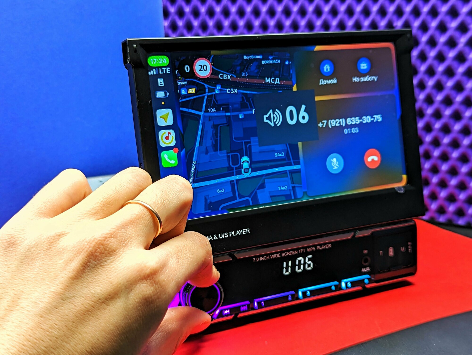 Отзывы на Выдвижная MP5 магнитола 1Din с CarPlay с Bluetooth, AUX, SD, USB с сенсорным экраном 7 дюймов с пультом