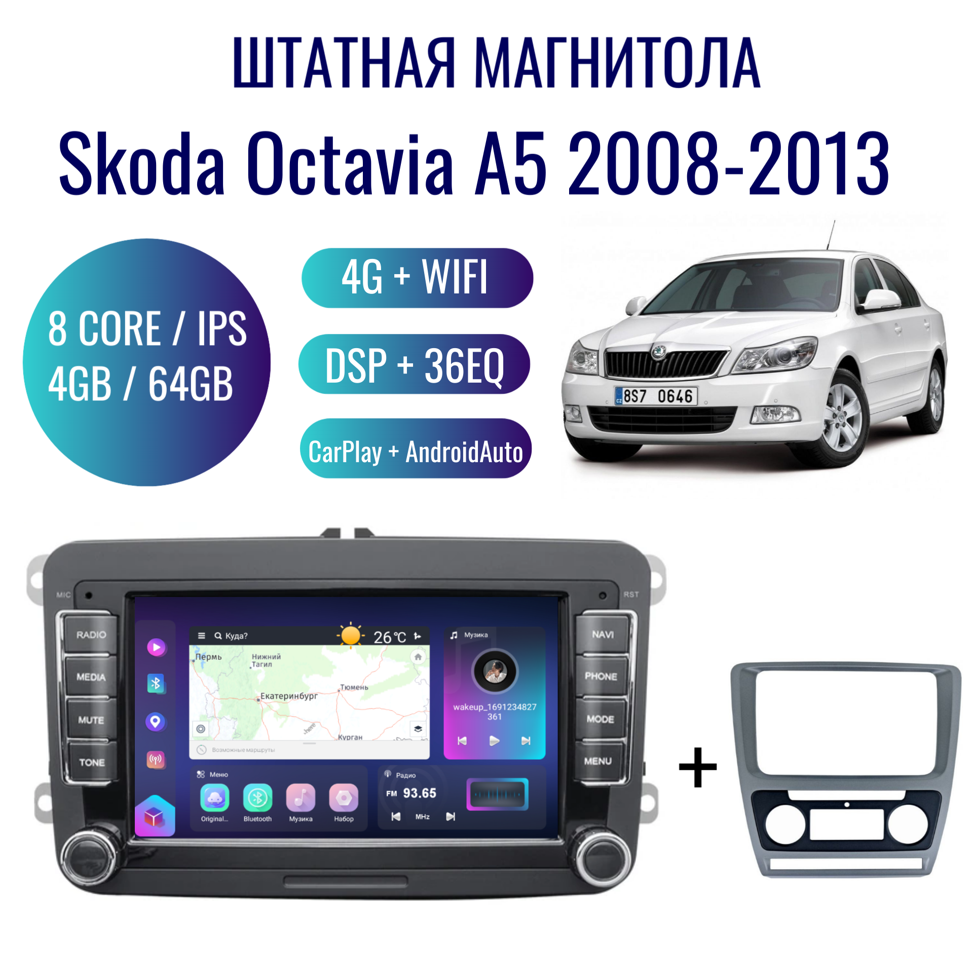 Штатная магнитола для Skoda Octavia на Android (4/64, 8 ядер, GPS, WIFI, CarPlay, Android Auto, DSP, 36EQ, навигатор) информация: