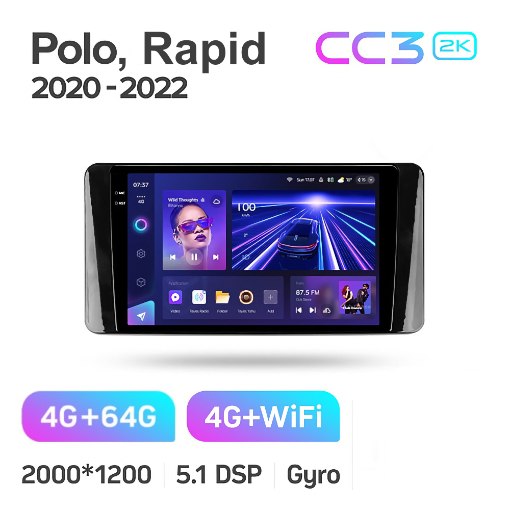 Магнитола Teyes CC3 4/64 2k-display Volkswagen Polo, Skoda Rapid 2020 - 2022 информация:
