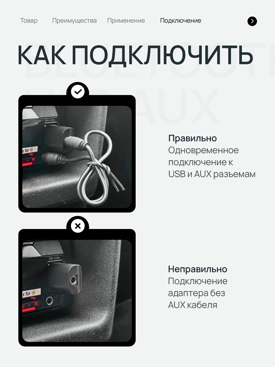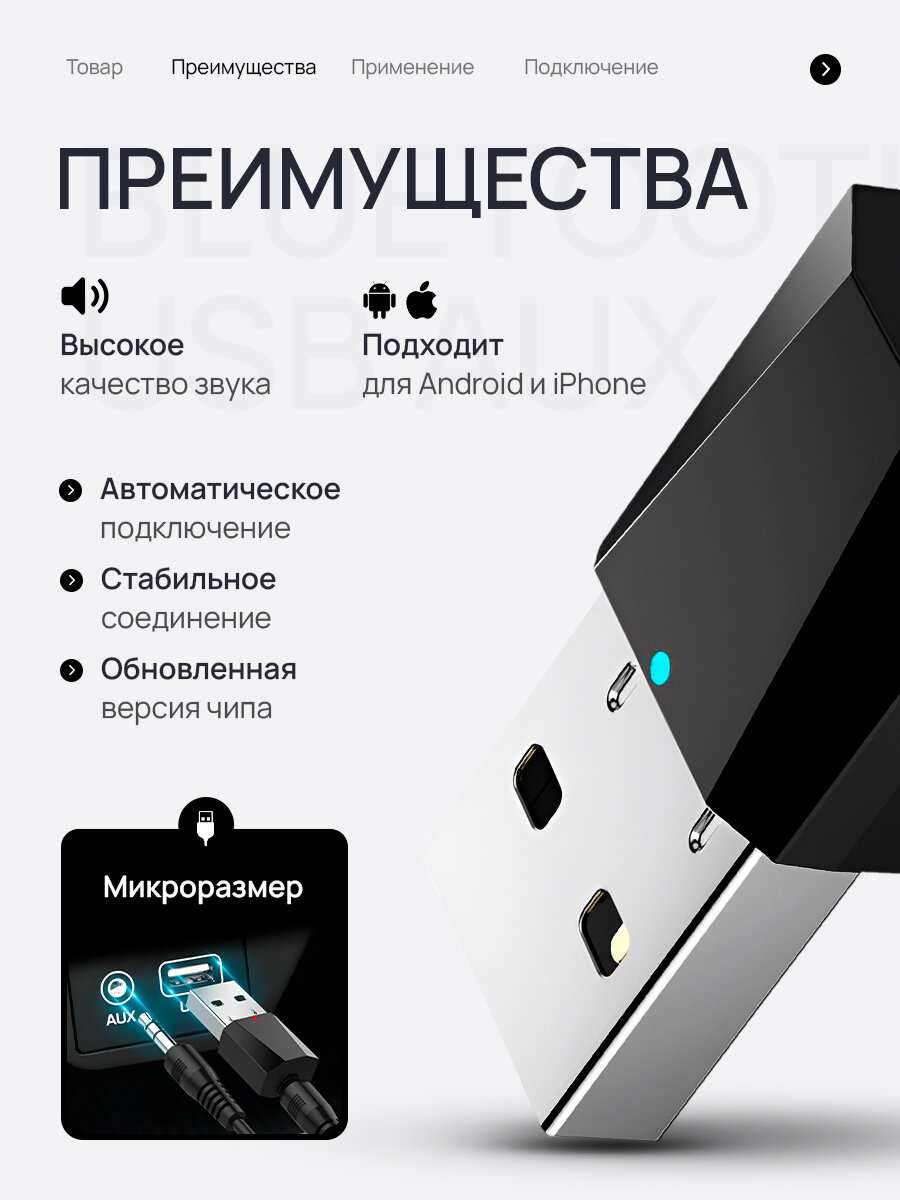 | Комплектация | Ресивер для автомагнитол, колонок и проч. Кабель AUX в комплекте |