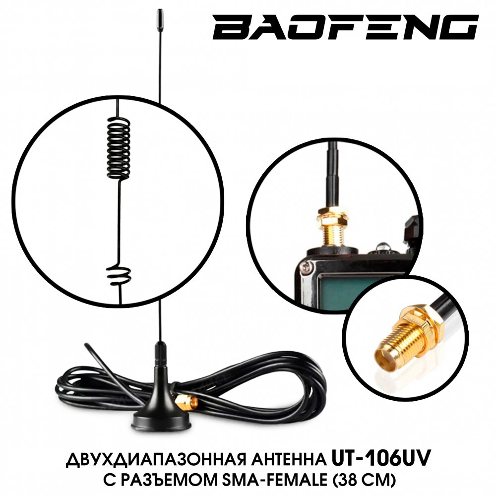 Антенна автомобильная двухдиапазонная UT-106UV (SMA - Female) для раций Baofeng информация: