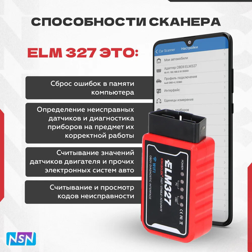 10 цен на Автосканер диагностический NSN ELM327 OBD2 WiFi версия 1.5 PIC18F25K80 для IOS, Android, Windows.