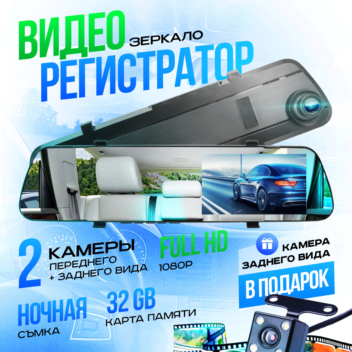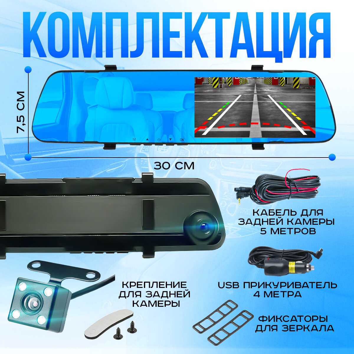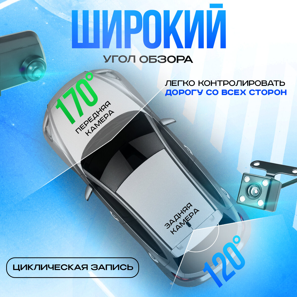 10 цен на Видеорегистратор зеркало для автомобиля 3в1 с 2-мя камерами