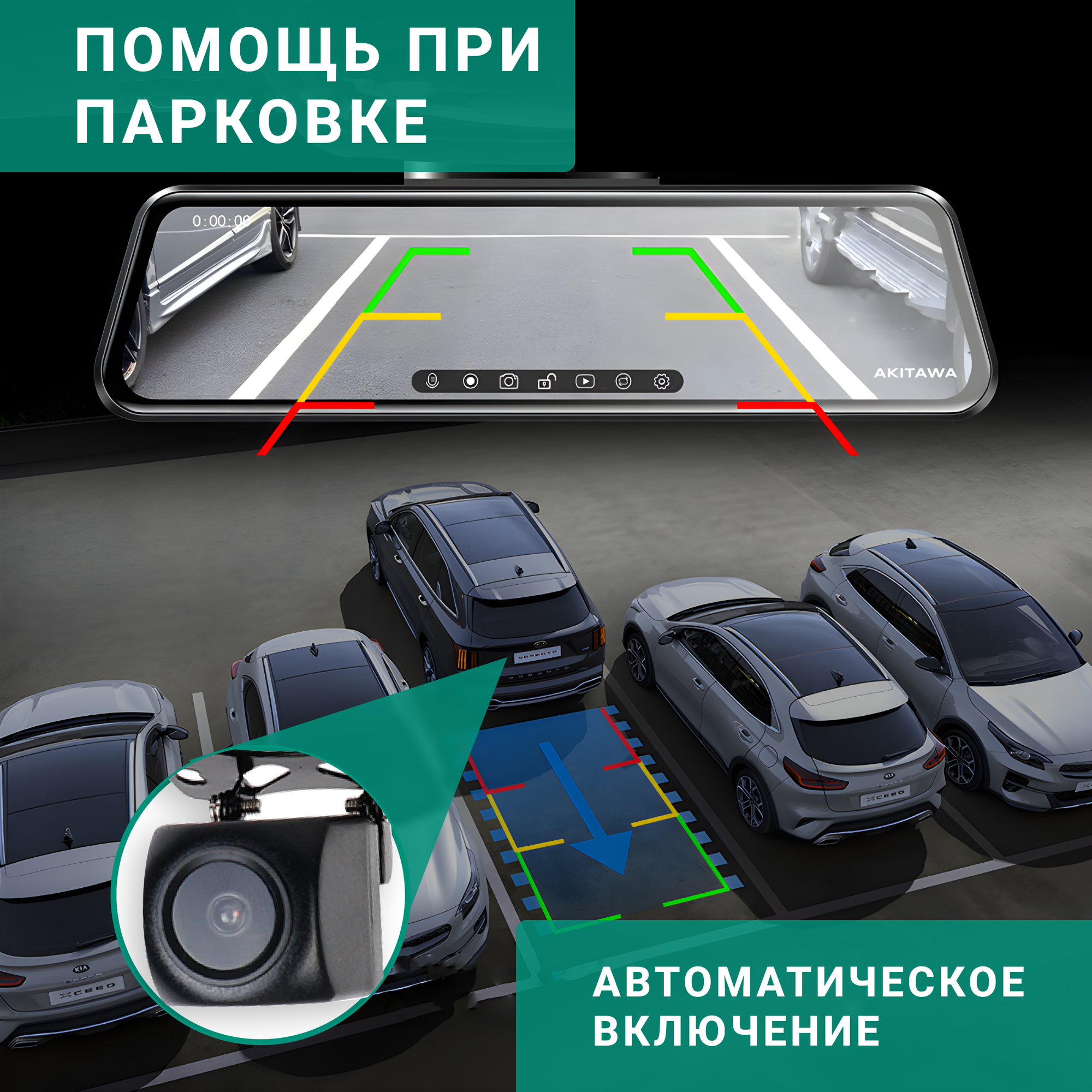 Отзывы на Автомобильный видеорегистратор зеркало с двумя камерами AKITAWA