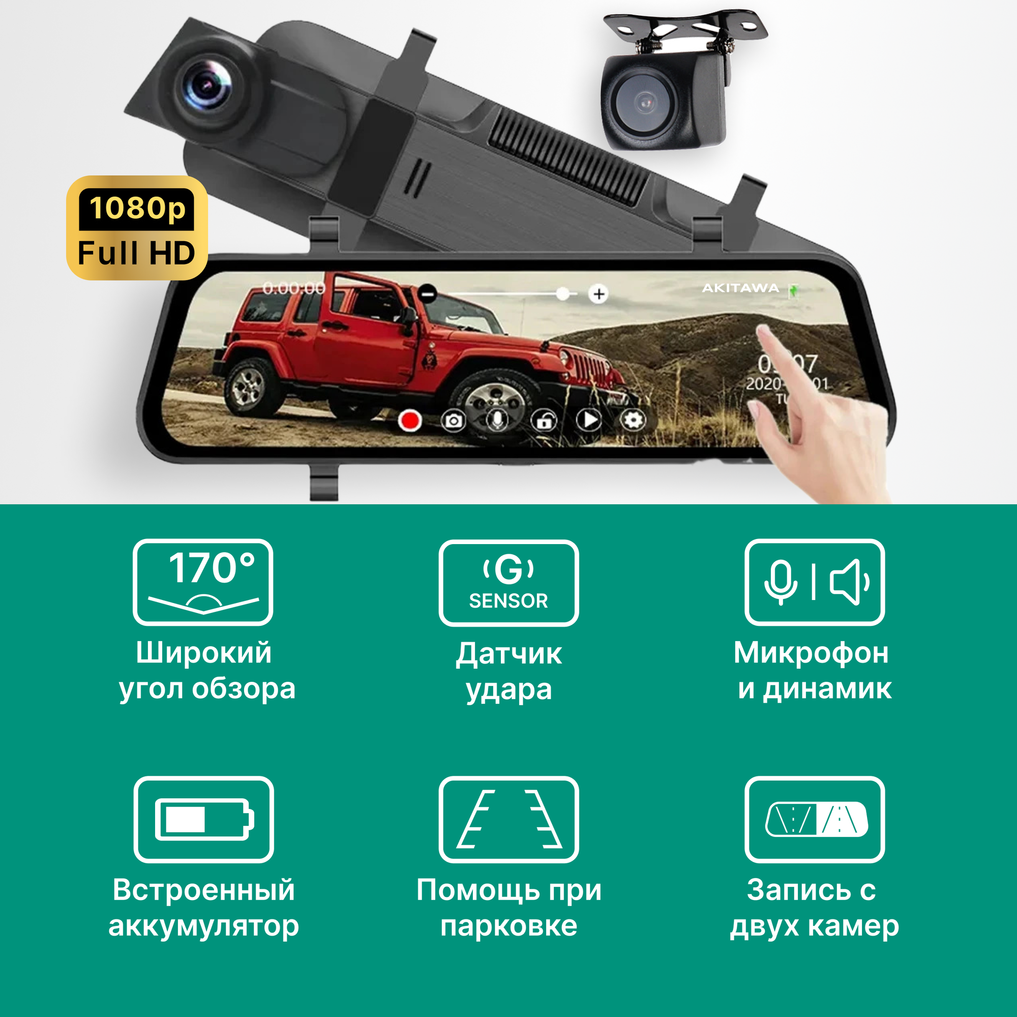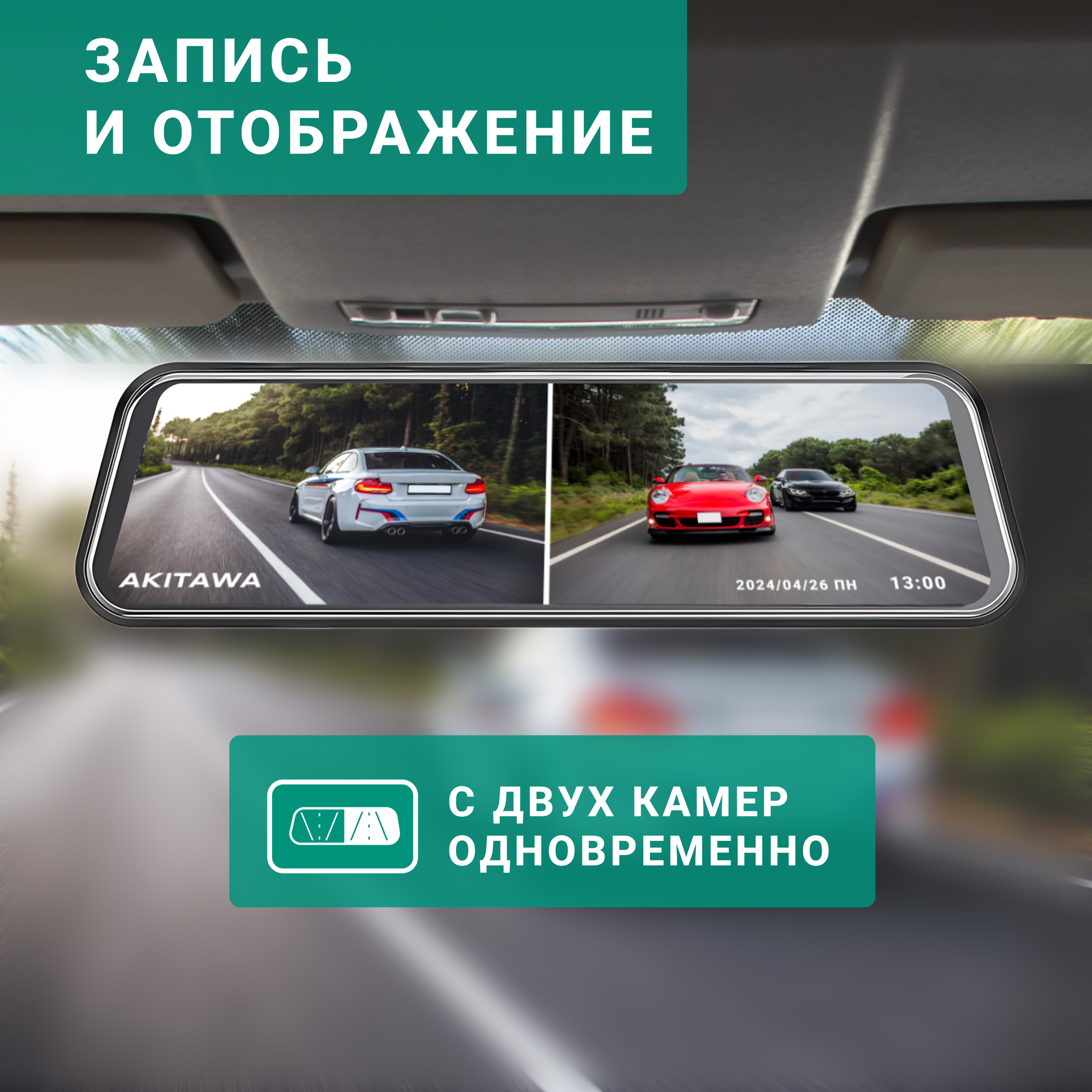Автомобильный видеорегистратор зеркало с двумя камерами AKITAWA информация: