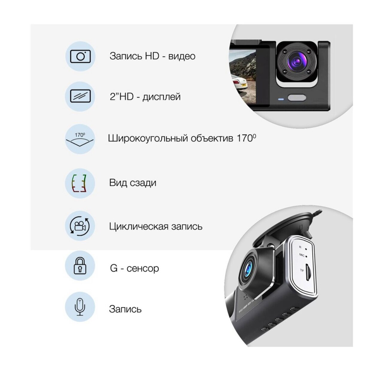 Автомобильный видеорегистратор, с камерой заднего вида, 2 камеры, 1920x1080
