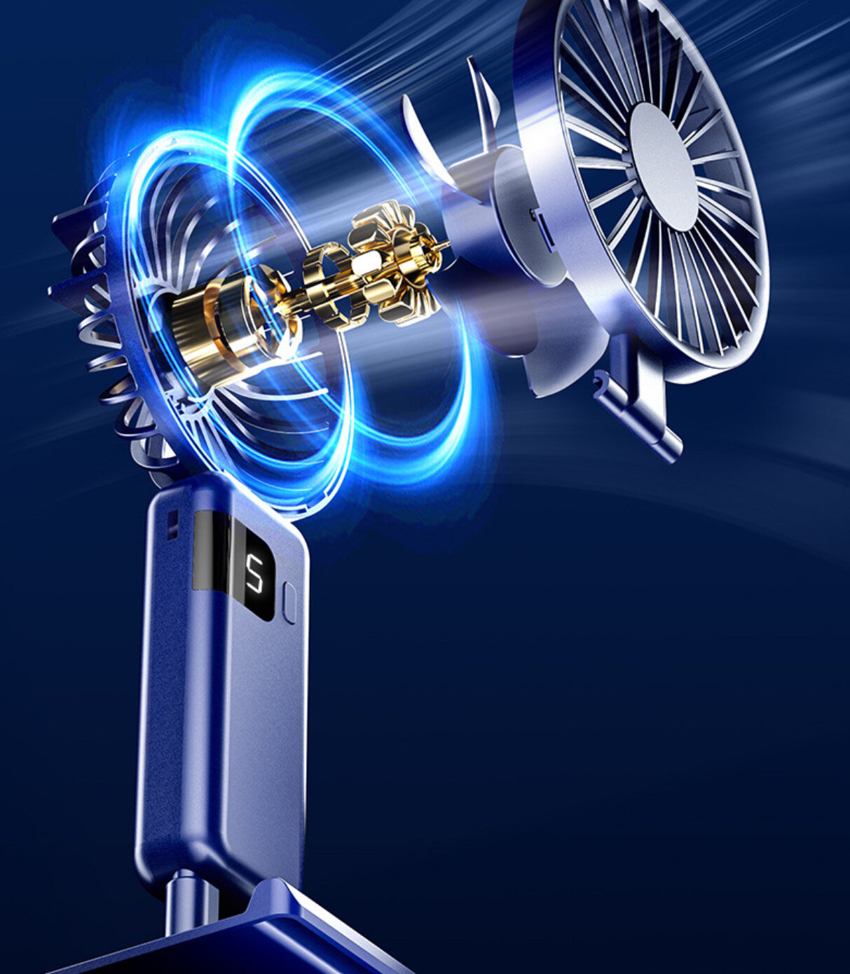 Вентилятор Power bank, складной, портативный, 5 скоростей работы, 3000 мАч, белый