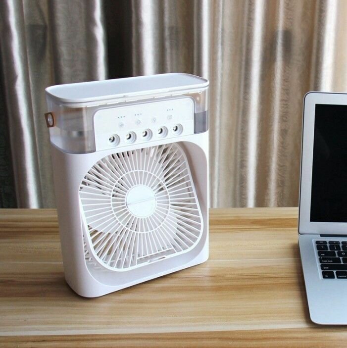 Портативный настольный вентилятор охладитель воздуха с подсветкой 7 цветов