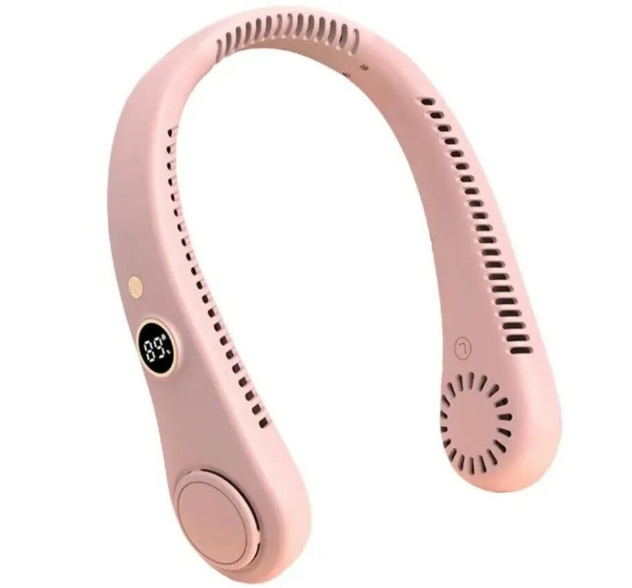 Вентилятор на шею с цифровым дисплеем портативный розовый информация: