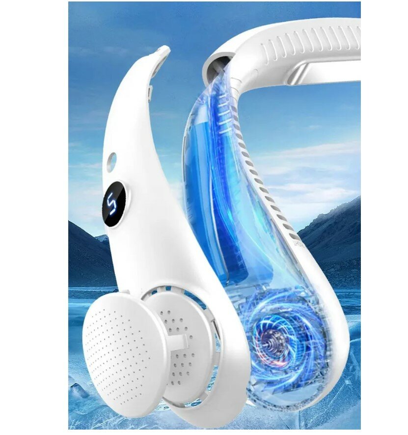 Вентилятор портативный переносной на лицо и шею, компактный шейный вентилятор, белый