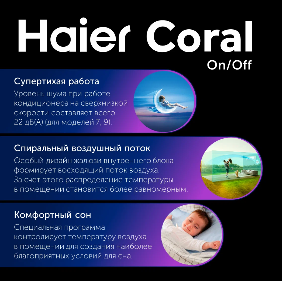 Сплит-система Haier HSU-09HPL203R3, класс А, с модулем evo Wi-fi (2024) Серия Coral On-Off, R32 (до 25 метров) информация: