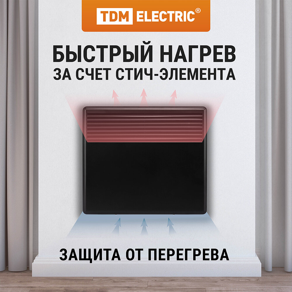 Конвектор электрический ЭК-1500С, 1500 Вт, термостат, стич, черный, TDM SQ2520-1208 (1 шт.)