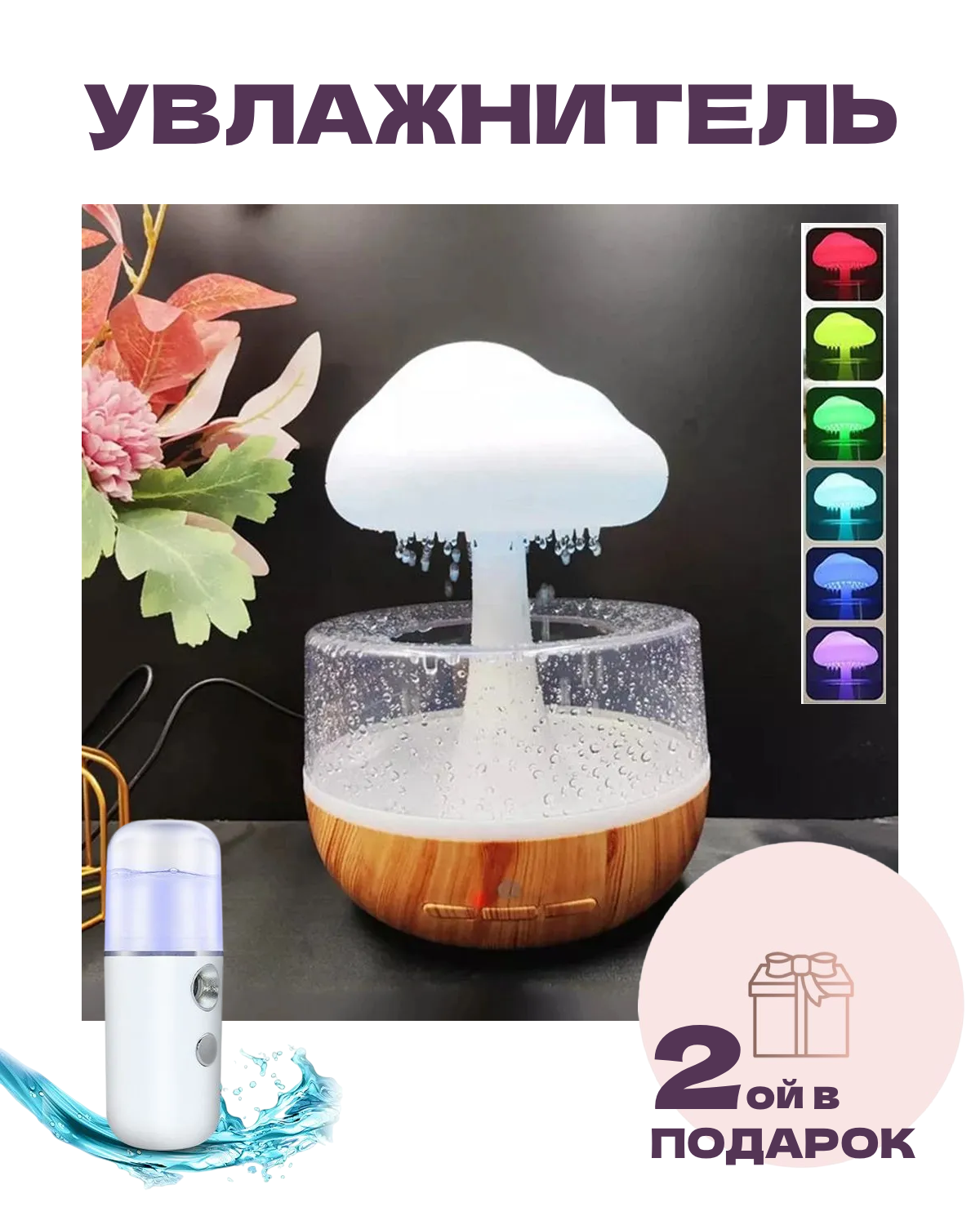 Увлажнитель воздуха облако дождь/ Аромадиффузор / Ночник Облако / Дождь / Гриб с подсветкой с эффектом дождя / Для увлажнения воздуха в помещении, дома информация: