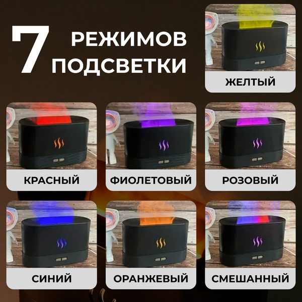 Увлажнитель воздуха с эффектом пламени и аромадиффузором, 7 цветов подсветки