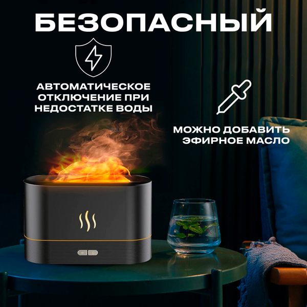 Увлажнитель воздуха с эффектом пламени/аромадиффузор, 7 цветов подсветки,чёрный информация:
