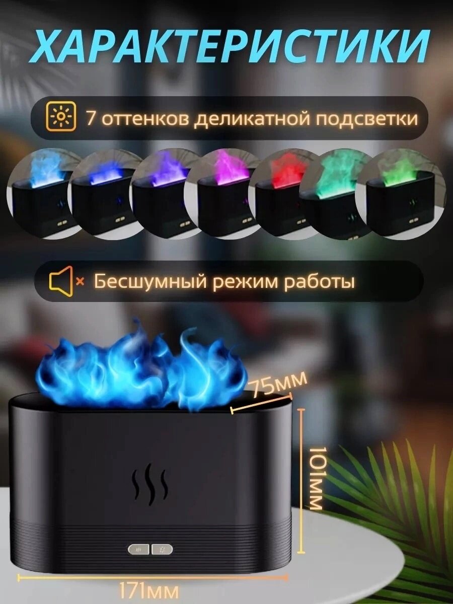 10 цен на Увлажнитель воздуха с эффектом пламени/аромадиффузор, 7 цветов подсветки,чёрный