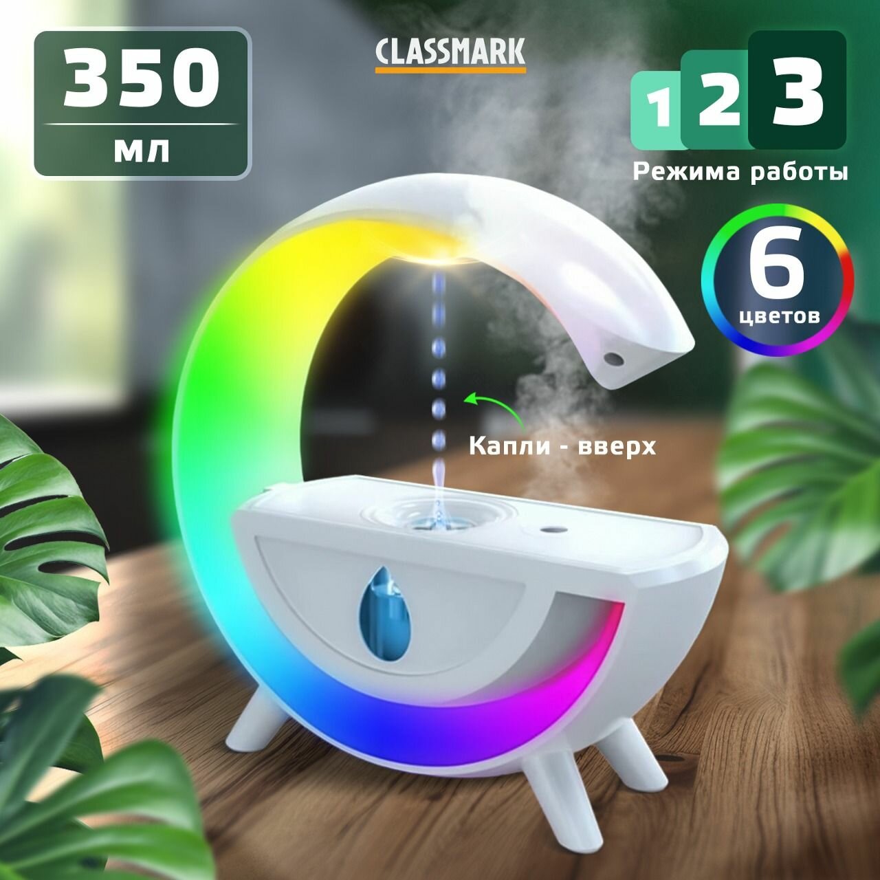 Антигравитационный увлажнитель воздуха для дома ультразвуковой с подсветкой Капля ночник информация: