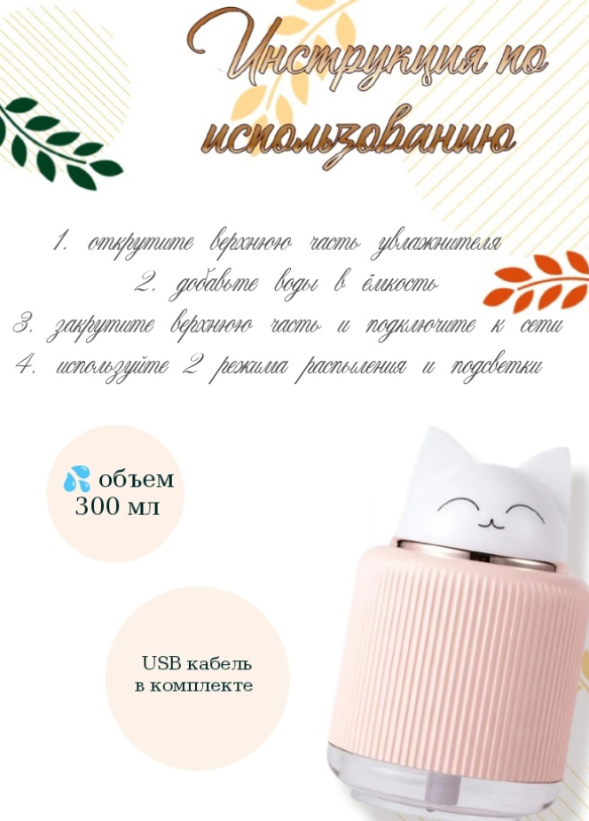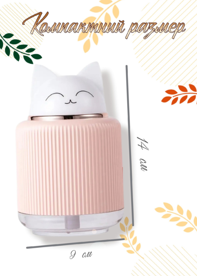 Увлажнитель воздуха с ночником для дома Котик, розовый информация: