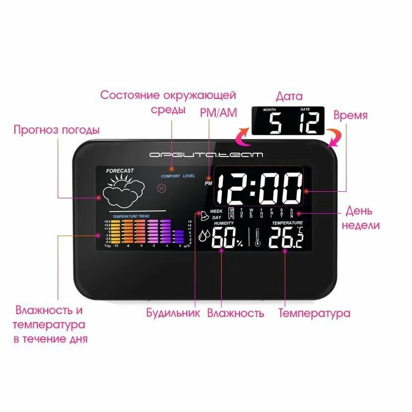 Метеостанция цифровая с часами орбита OT-HOM29 информация: