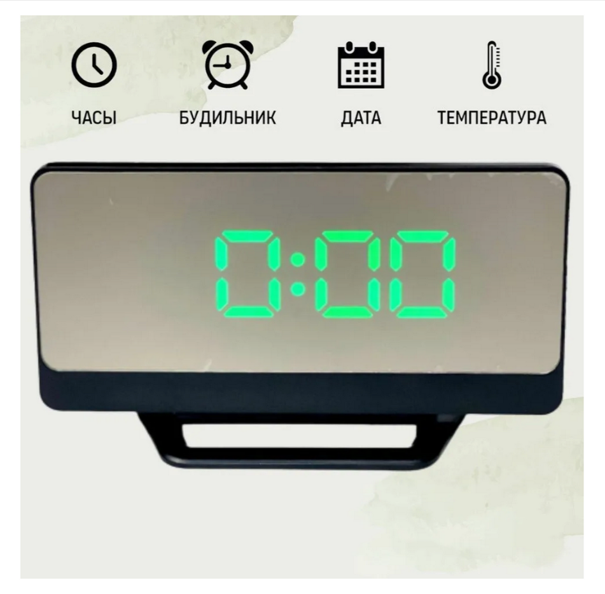 Отзывы на Часы зеркальные LED MIRROR NA-068 Зеленое свечение USB (черный)
