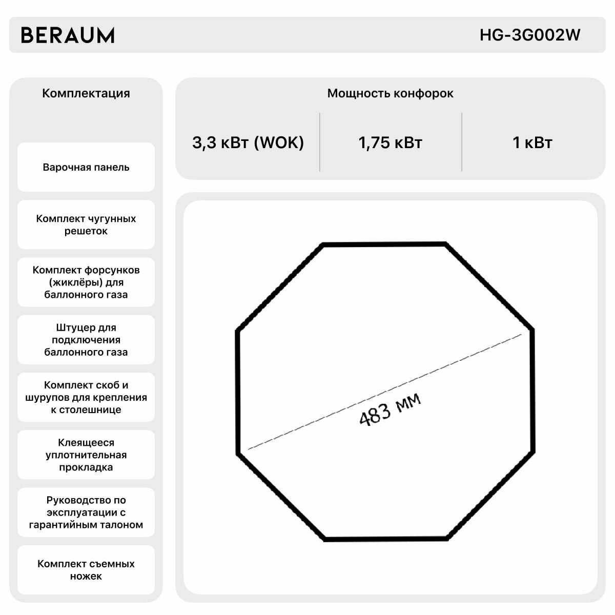 Газовая варочная панель Beraum HG-3G002W с газ-контролем информация: