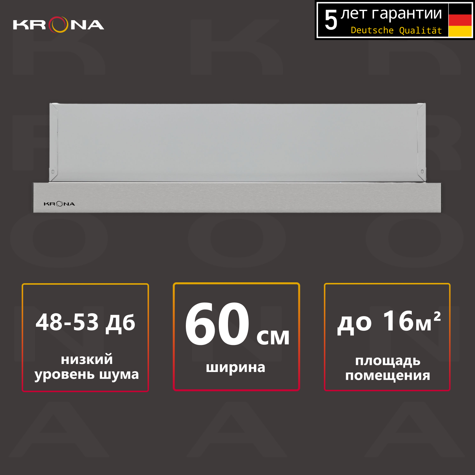 Воздухоочиститель Krona KAMILLA T 600 INOX (2 мотора) вытяжка кухонная информация: