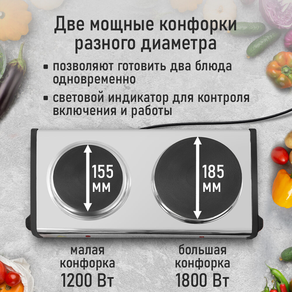 | Общее количество конфорок | 2 |