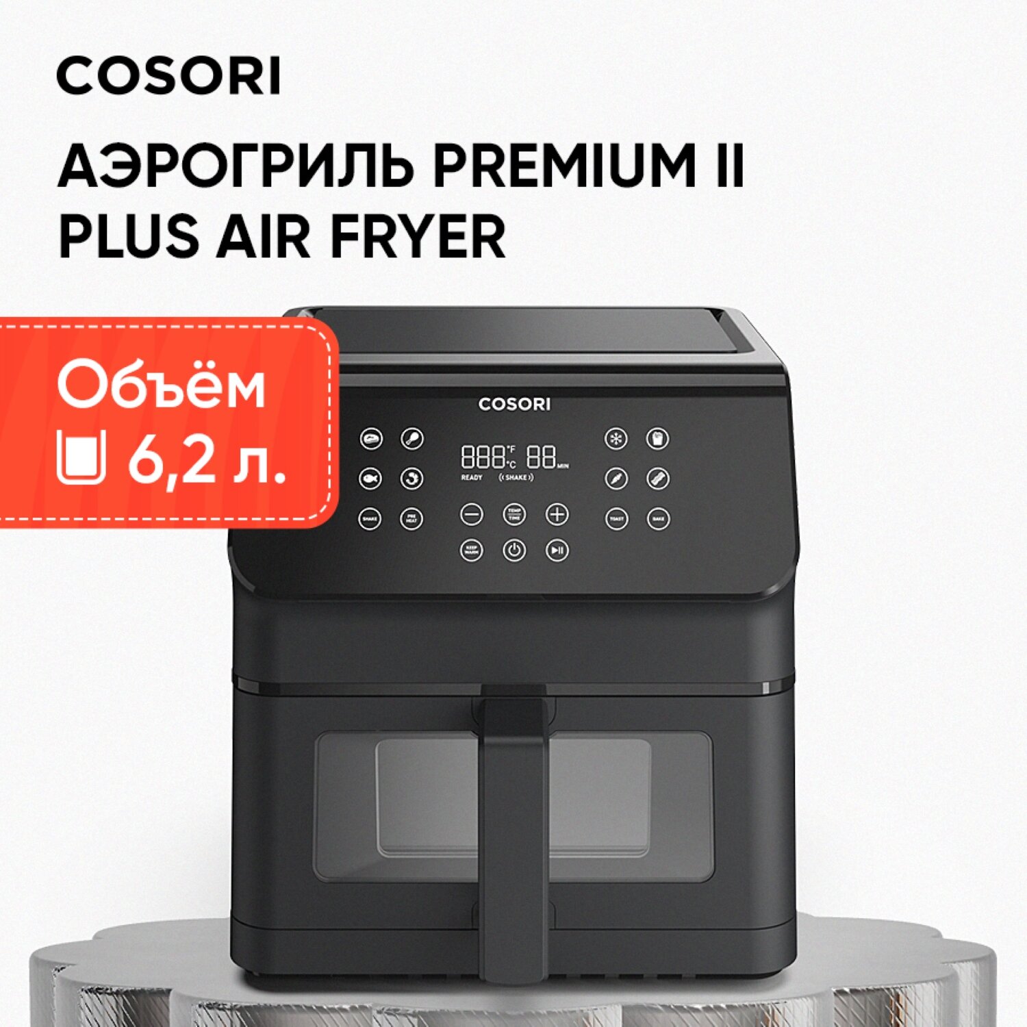 Аэрогриль Cosori Premium II Plus Air Fryer 6,2л CAF-P652-KEU Black информация: