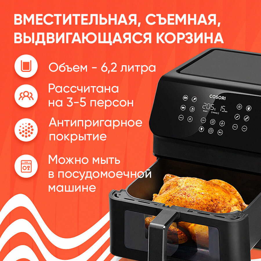 Отзывы на Аэрогриль Cosori Premium II Plus Air Fryer 6,2л CAF-P652-KEU Black