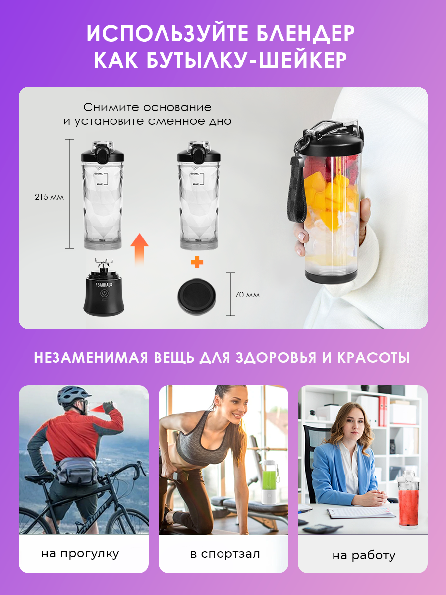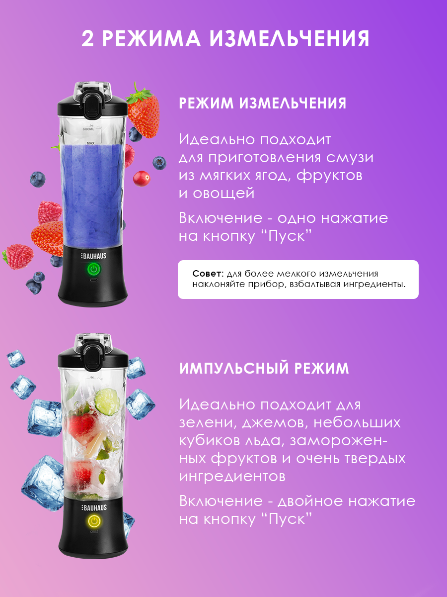 Портативный мини блендер BAUHAUS для смузи и коктейлей черный информация: