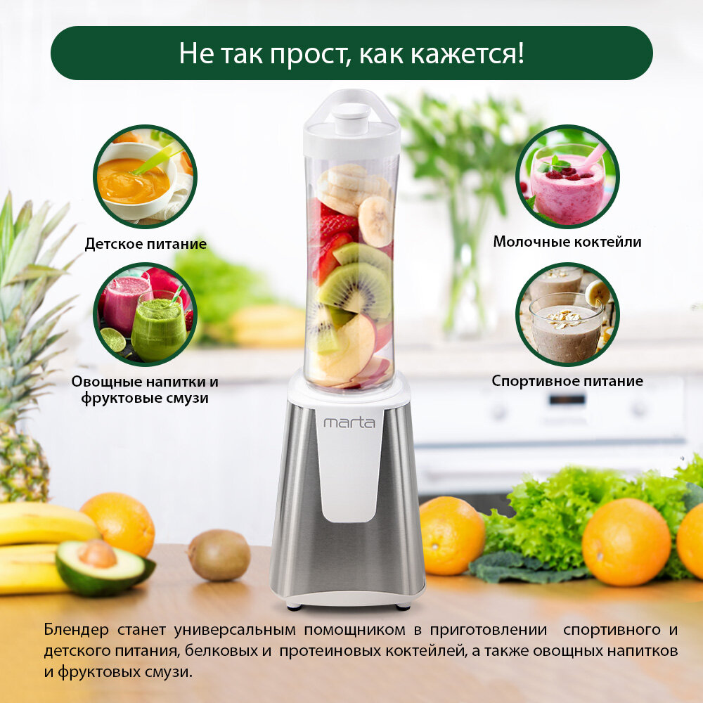 Блендер MARTA MT-KP1595A, мощность 1200Вт, для приготовления смузи, супов-пюре, коктейлей