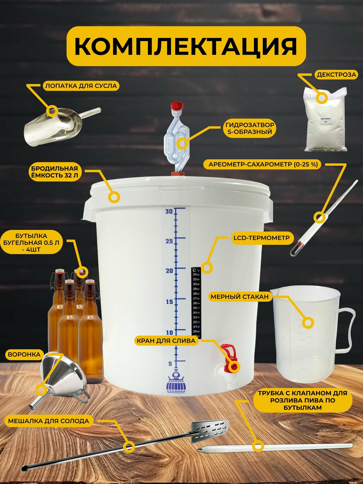 Домашняя пивоварня Premium, набор для пивоварения 32 л. информация: