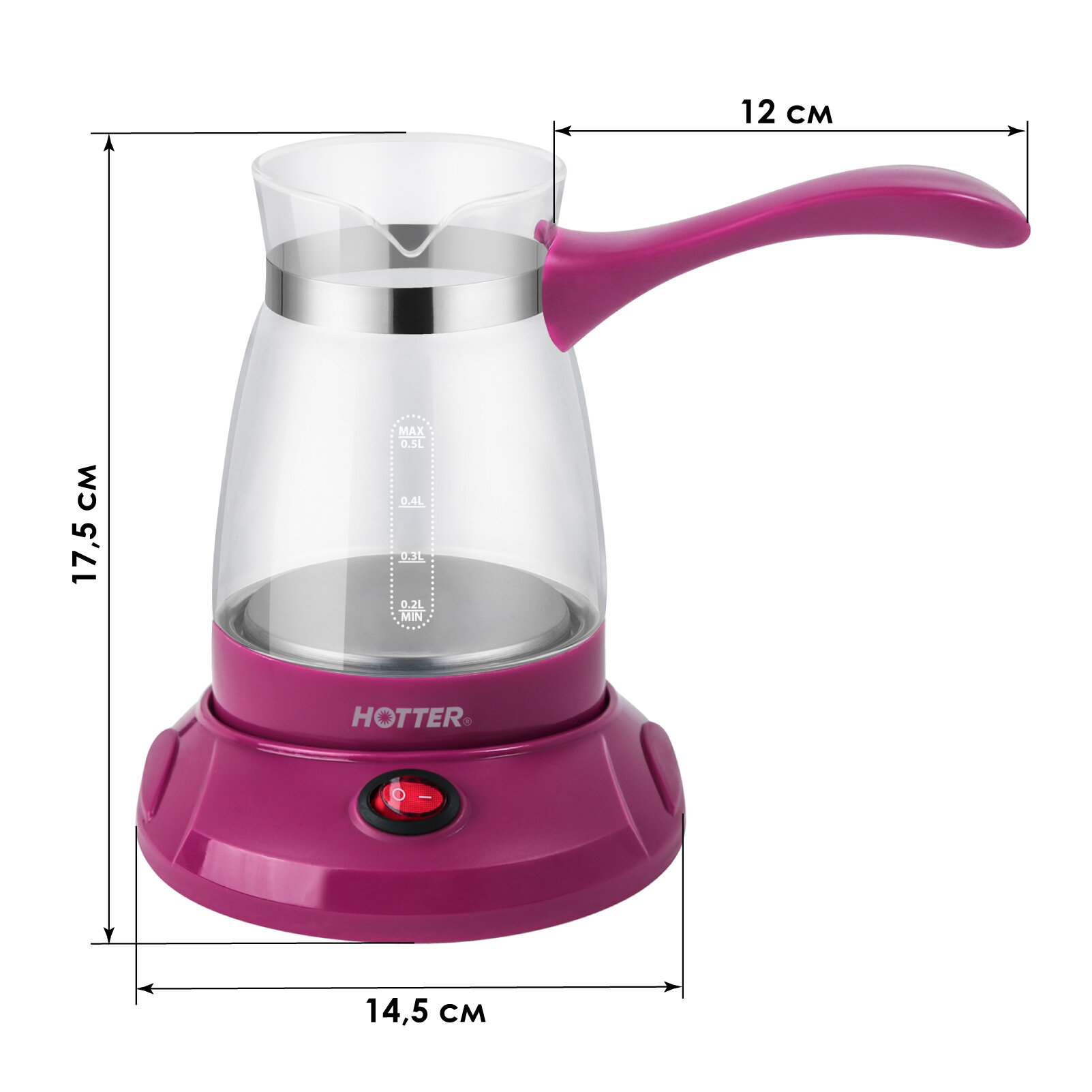 Электрическая турка Hotter HX-106, бордовая, объем 500мл, мощность 600Вт информация: