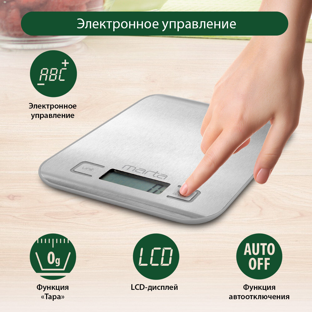 MARTA MT-1646 (new) серый жемчуг весы кухонные информация: