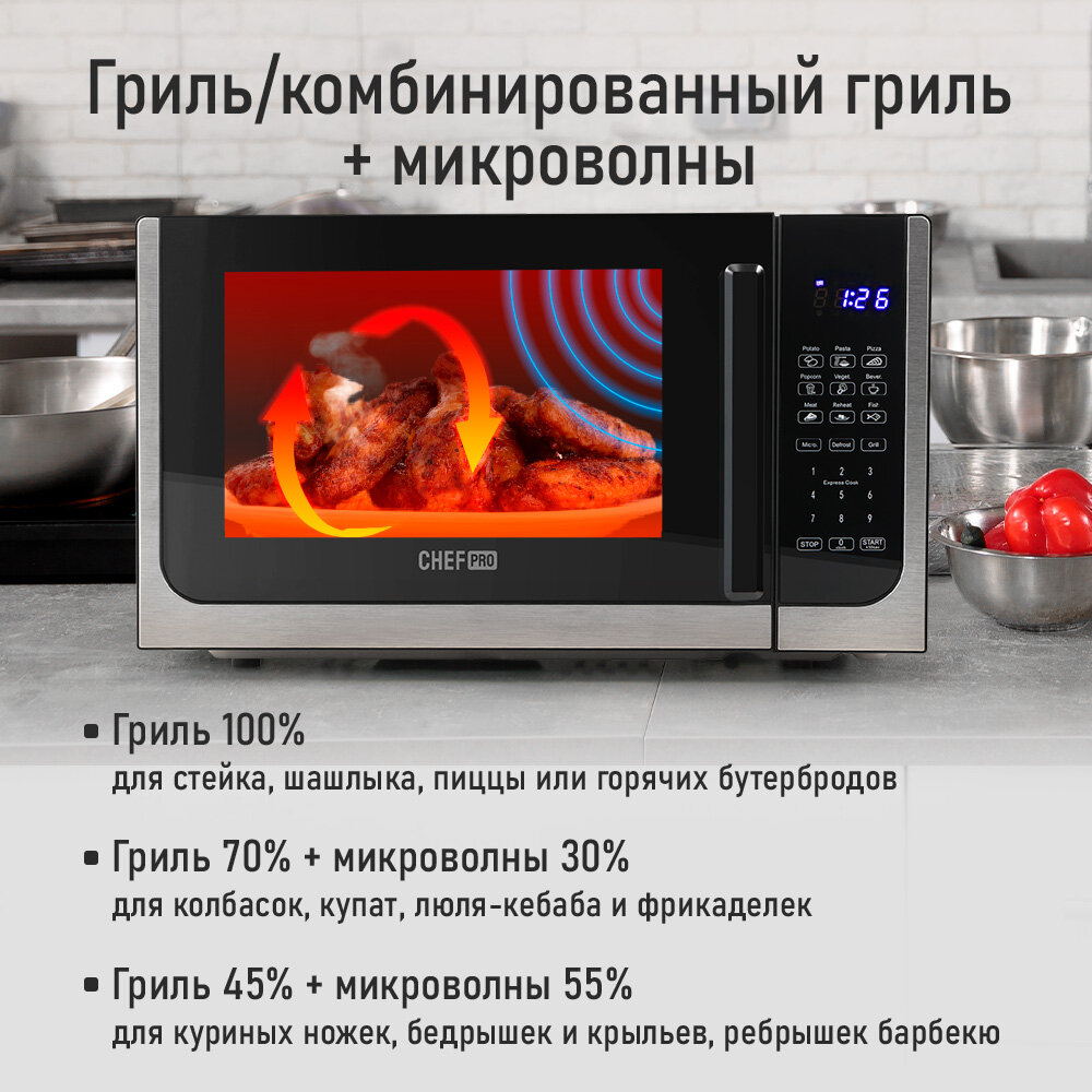 10 цен на CHEF PRO CF-MW1950A черный/сталь микроволновая печь