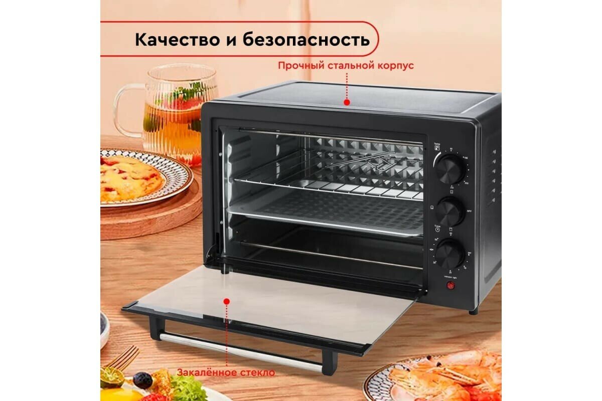 Мини-печь Волжанка ПЧ-48Ч, 1500 Вт, 48 л, 60-230 °C, таймер, чёрная информация: