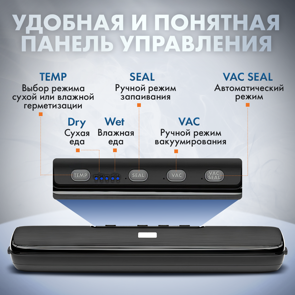 Вакуумный упаковщик/Бытовой вакуумный упаковщик с выбором режима для сухих и влажных продуктов/Вакууматор для продуктов /Запаиватель пакетов информация: