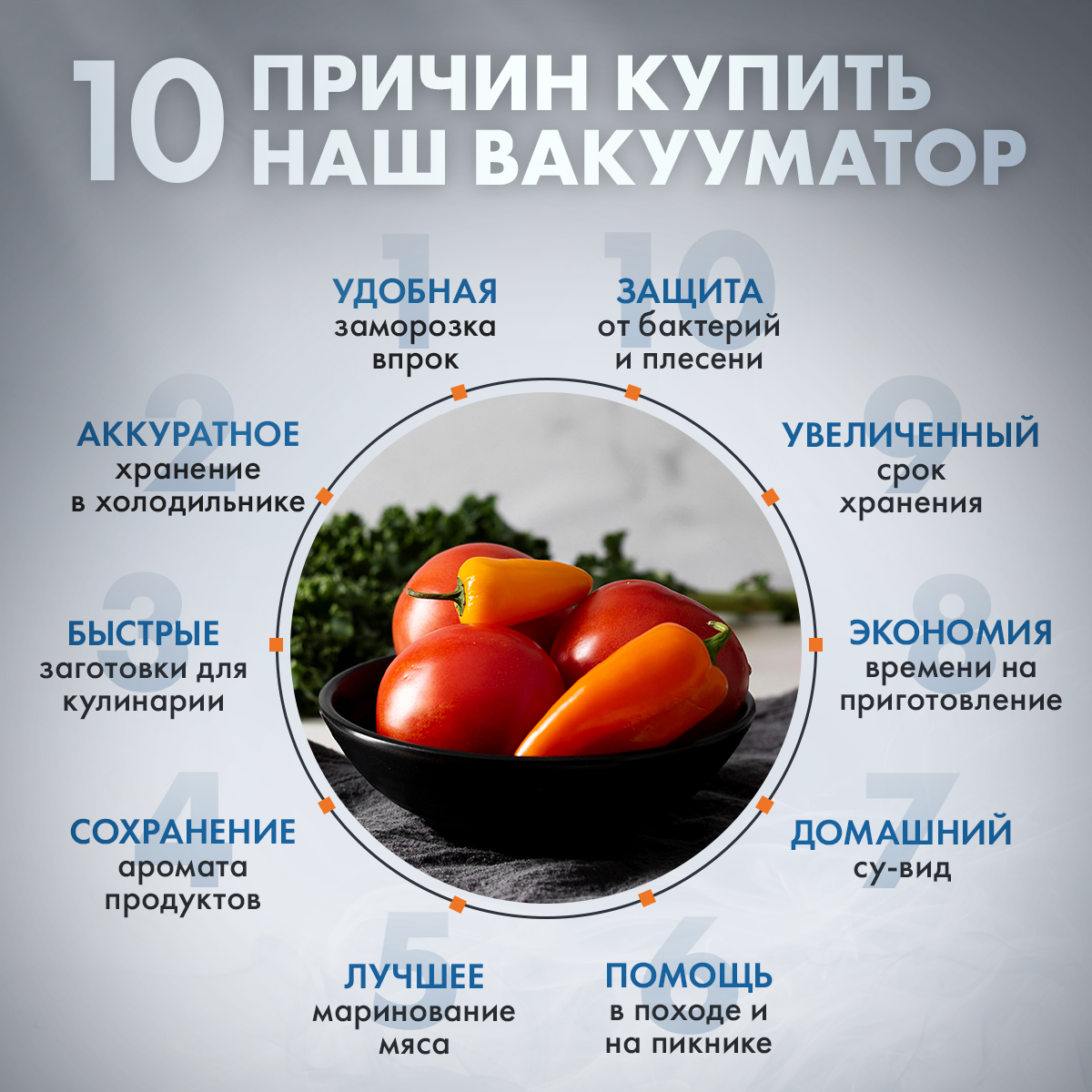 10 цен на Вакуумный упаковщик/Бытовой вакуумный упаковщик с выбором режима для сухих и влажных продуктов/Вакууматор для продуктов /Запаиватель пакетов