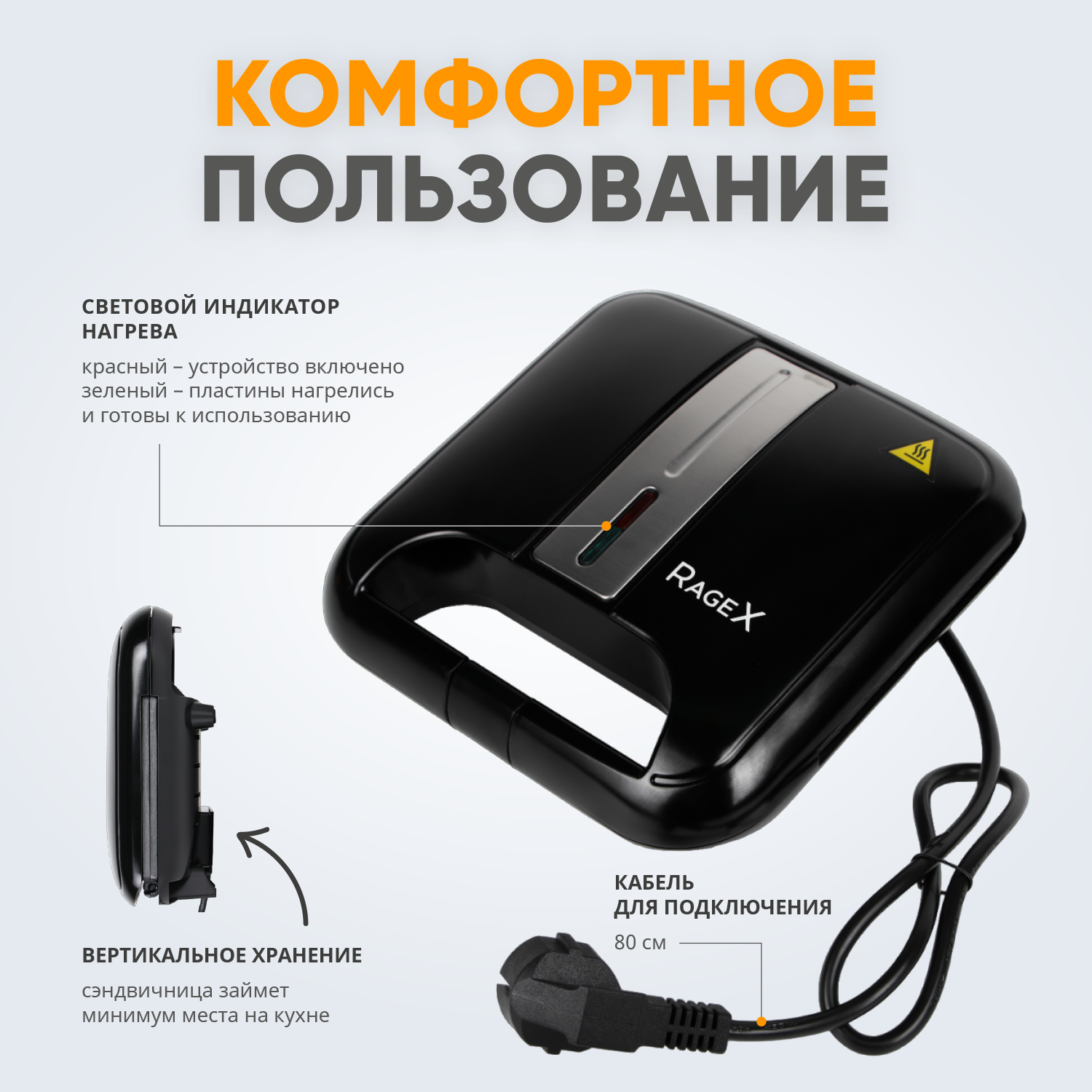 Бутербродница электрическая (сендвичница, тостер для бутербродов) RageX R731-000, 750 Вт, панель гриль, черная информация: