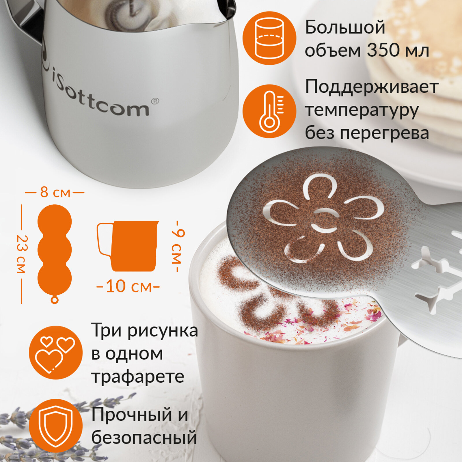 Отзывы на Капучинатор, вспениватель для молока и сливок ручной электрический / подарочный набор 4 в 1: мини-миксер с подставкой / питчер / трафарет для кофе