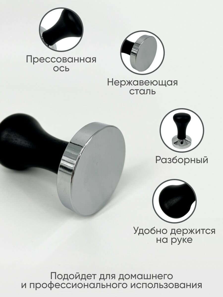 Отзывы на Темпер для кофе 53мм стальной, пресс для кофе с черной деревянной ручкой
