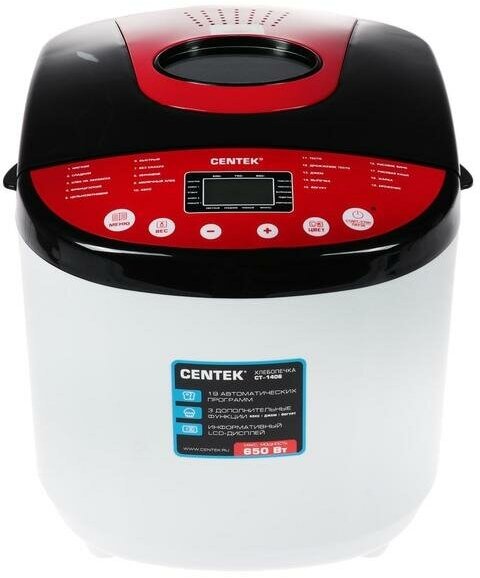 Хлебопечка Centek CT-1406 , 650 Вт, 19 программ, отсрочка старта, белая информация: