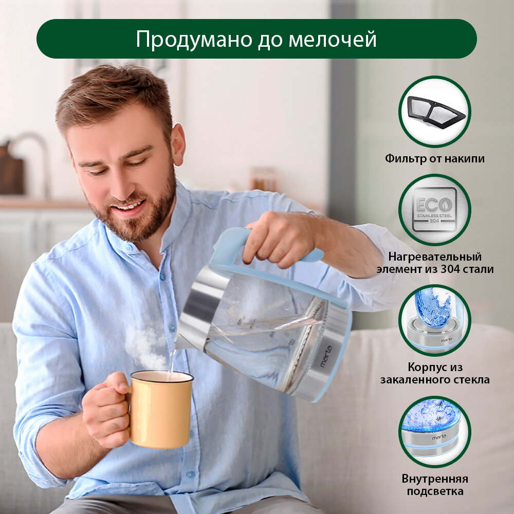 Электрический чайник MARTA MT-4553 голубой информация: