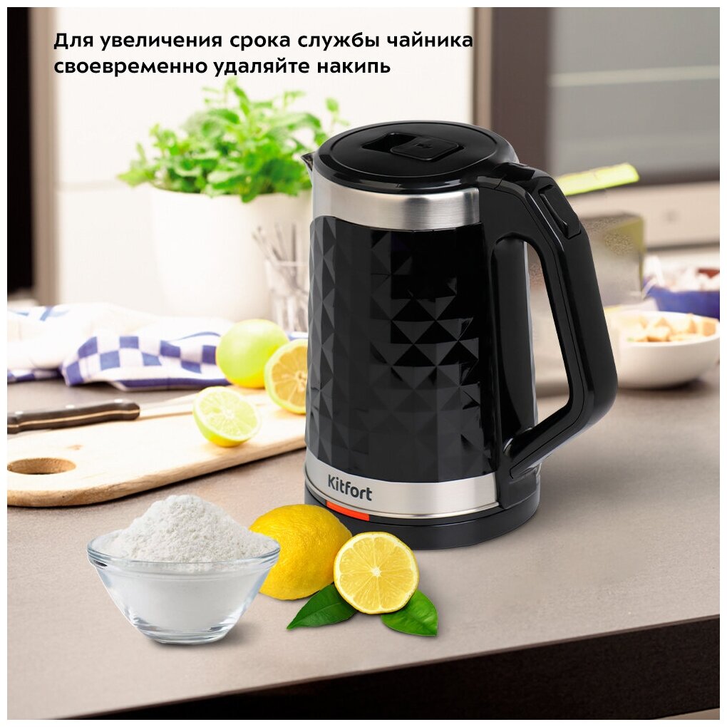 Чайник электрический Kitfort КТ-6173, пластик, колба металл, 1.5 л, 2200 Вт, чёрный 10 551 ₽