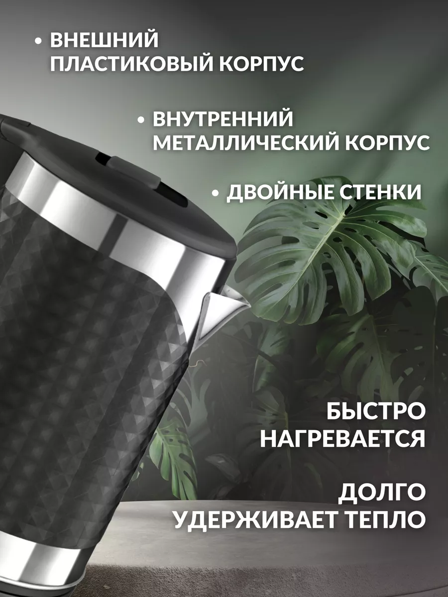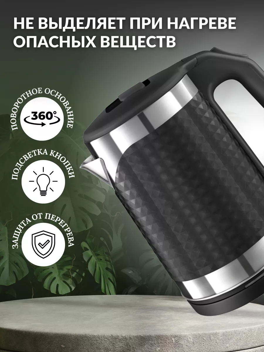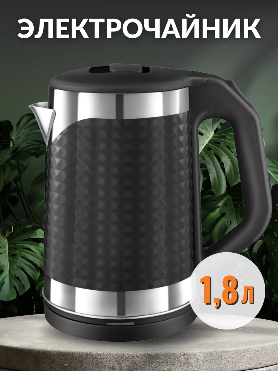 10 цен на Электрический чайник для воды, чайник электрический 1.8 л, электрочайник мощность 2200Вт, световой индикатор, двойные стенки, черный