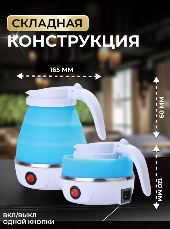 Силиконовый складной электрический чайник Elektrik Kettle голубой информация: