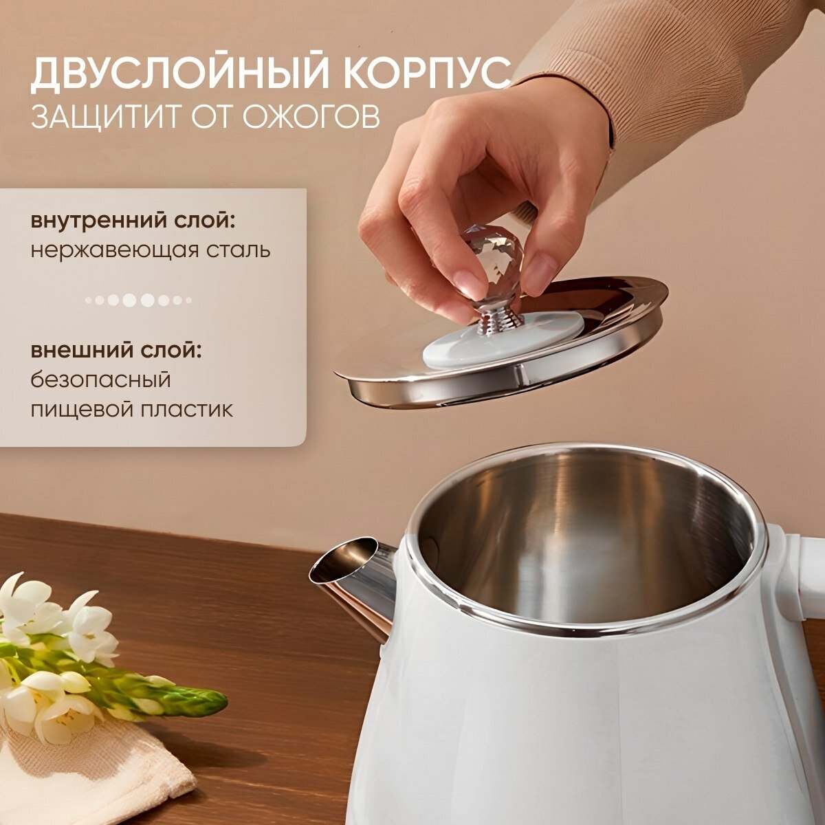 Электрический чайник DELTA DL-1109, 2 литра, 1500 Вт, двойные стенки, бежевый