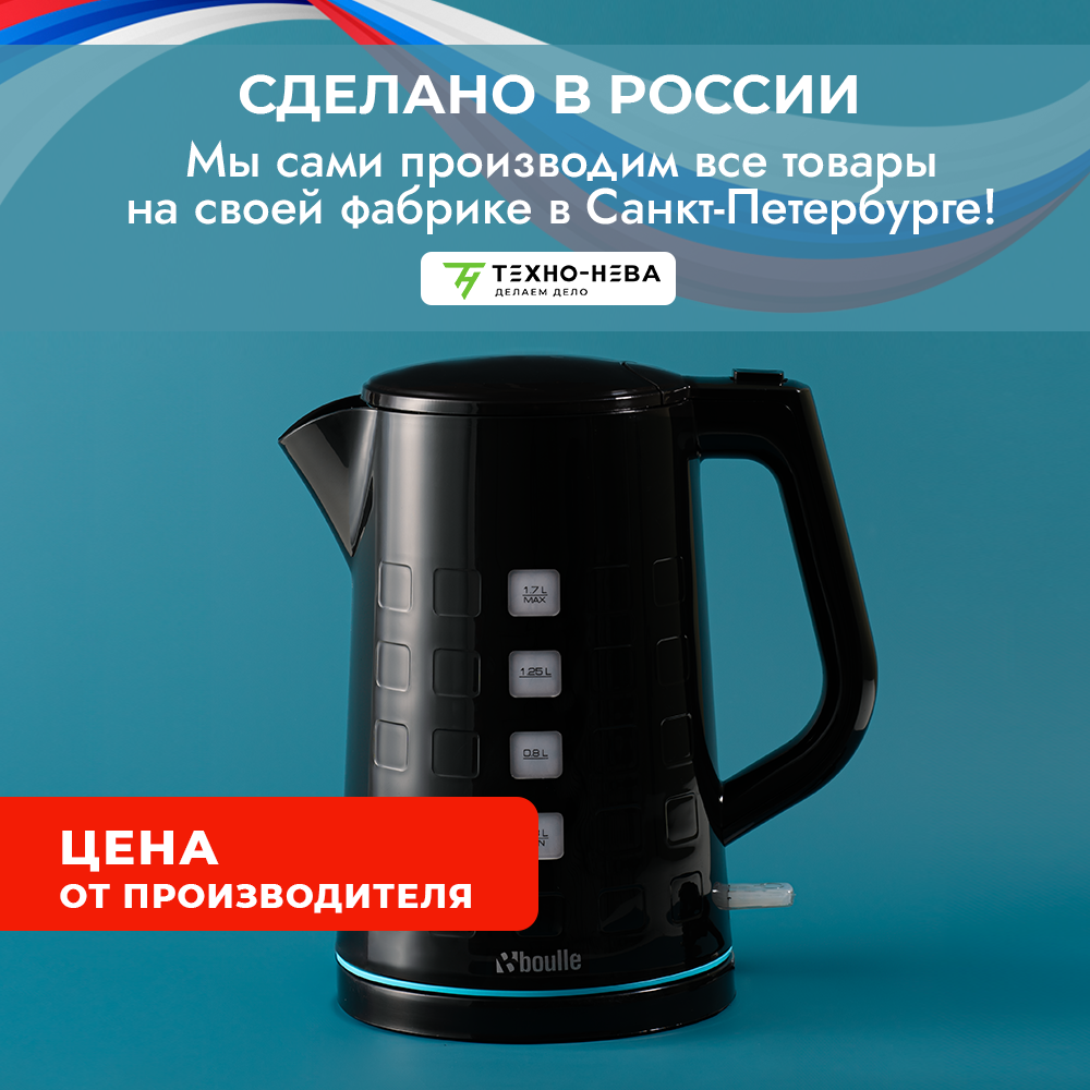 Чайник электрический Boulle 5251 1,7л автоотключение вращение на 360 контроллер STRIX Англия черно-голубой информация: